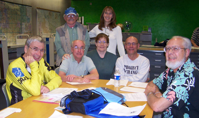The CAzBike Executive Team Executive board meeting at Burton Barr LibrarySeated: Gene Holmerud, Peter Mather, Sharon Newman-Matt, Charlie Sobczak , Bob Jenson.Standing: Radar Matt, Gail Hildebrant